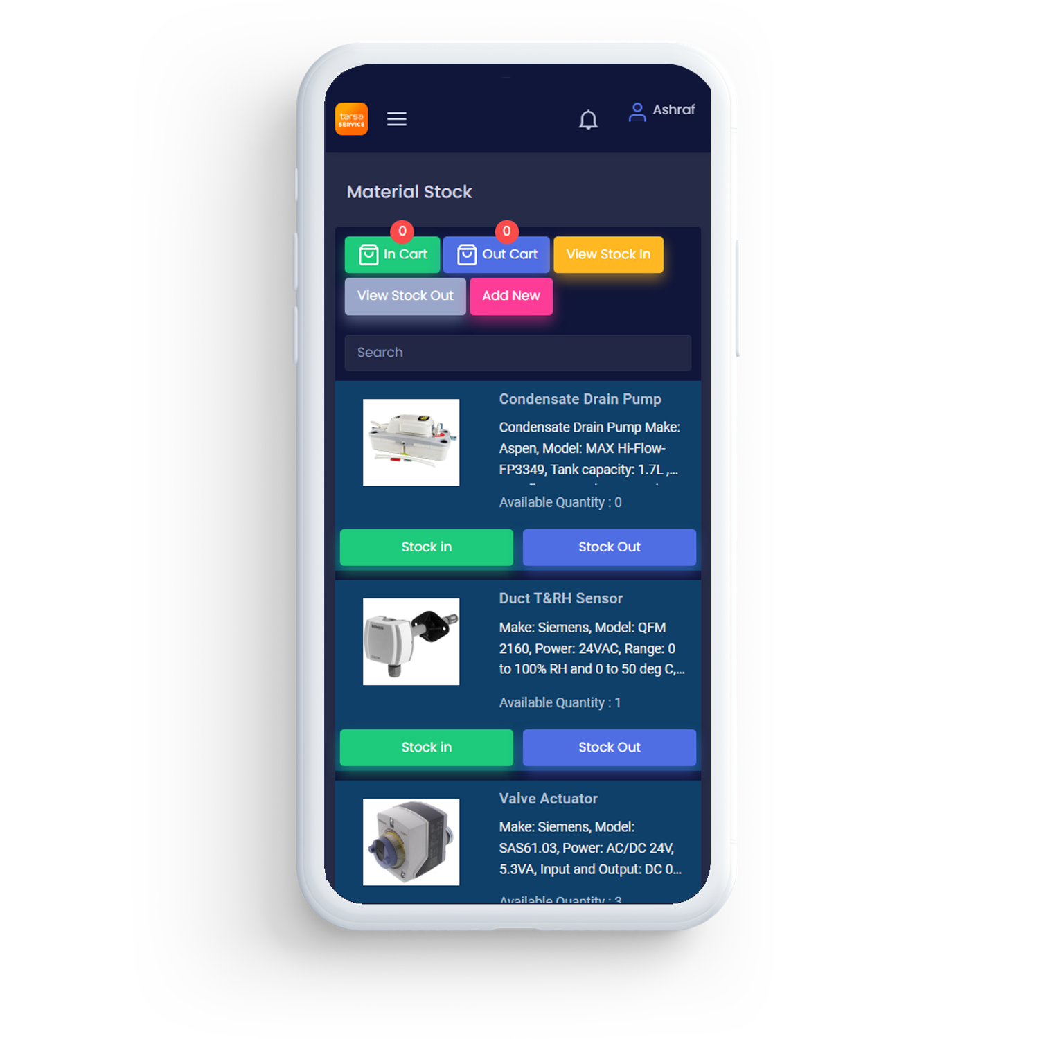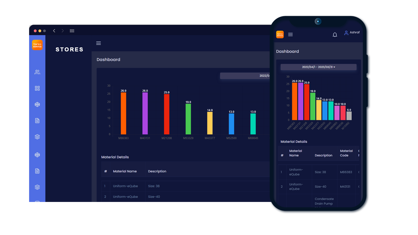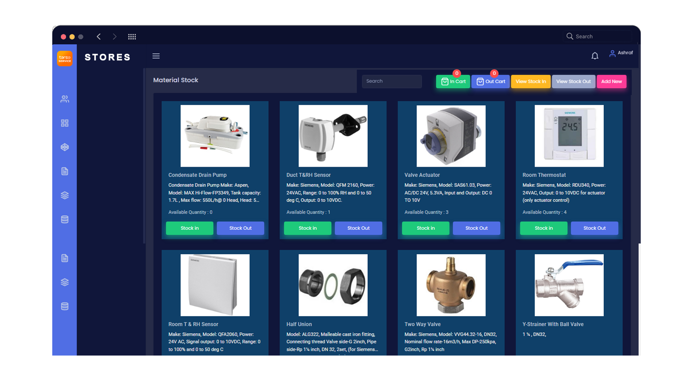 Tarsa Store application is designed to work in tandem with our Tarsa Service application. It is also capable of managing inventory as a standalone application with a wide array of features .
