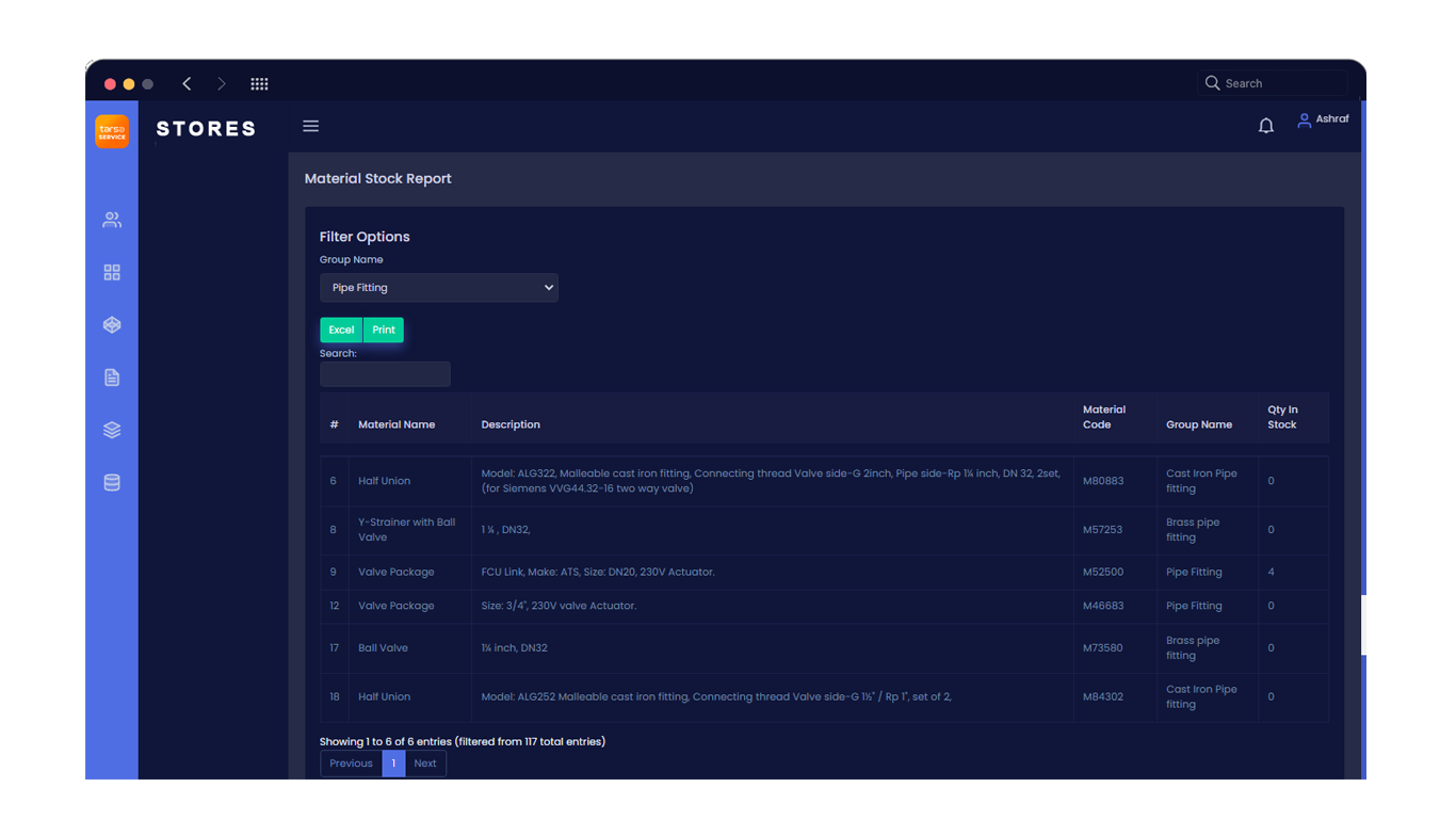 Tools and Material issue reports, Modifications report, stock report and many more reports to support you with easy management of your stores and stocks.